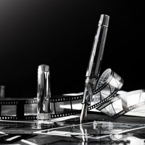 フィルム映画の素材として用いられたセルロイドを使用し、銀幕の世界を思わせる色彩です。